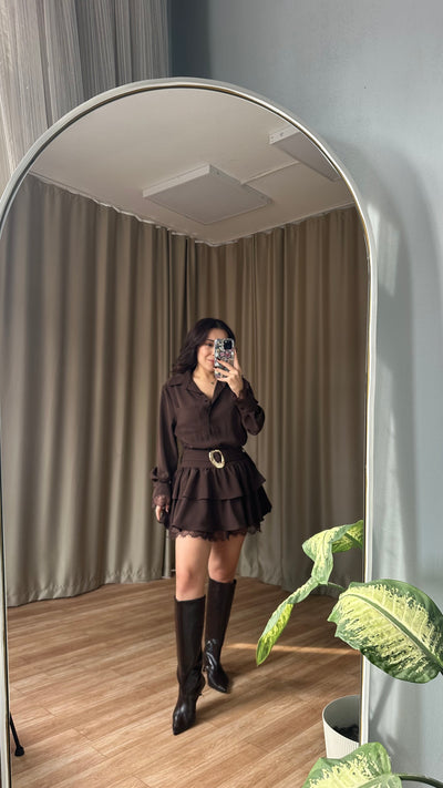 Fırfırlı Kahve Elbise