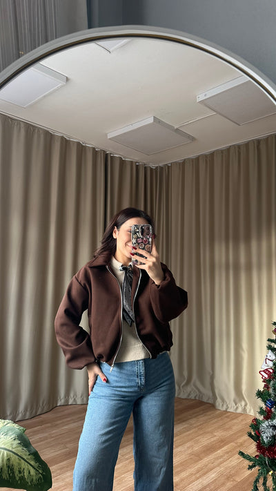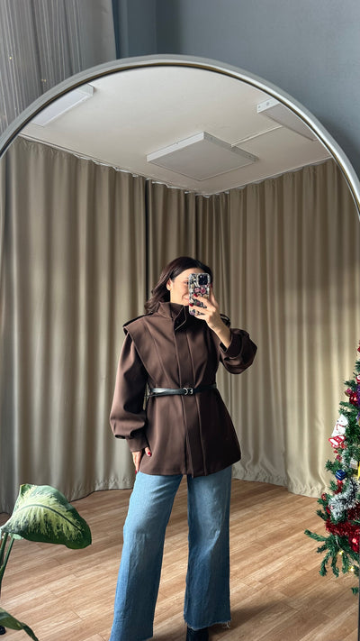 Kahve Balon slüetli kaşe bomber ceket