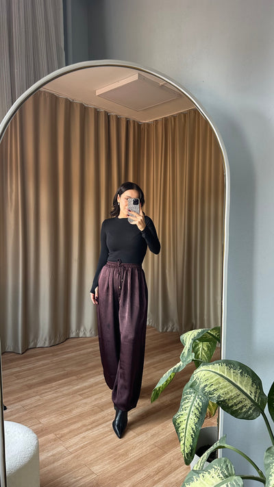 Bomber şalvar Mürdüm saten pantolon