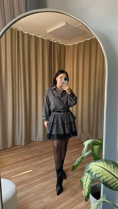 Dantel detaylı hırka ve etek takım