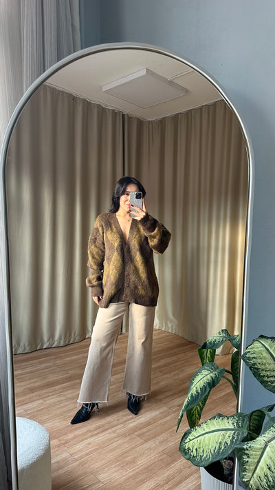 Kahve Baklava Desen Sakallı Salaş Hırka