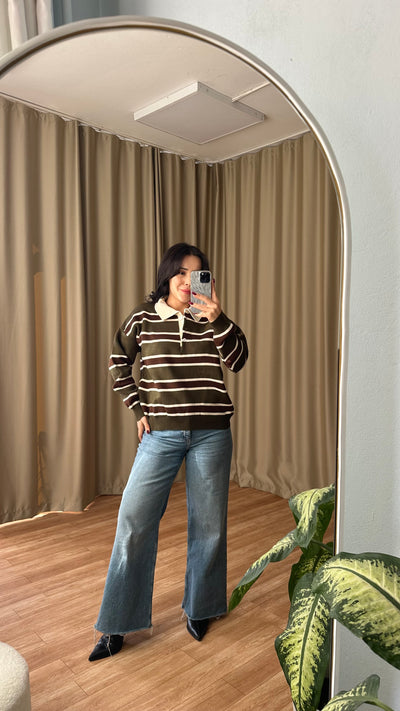 Haki çizgili kazak