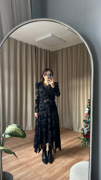 KADİFE BASKILI ASİMETRİK ETEK