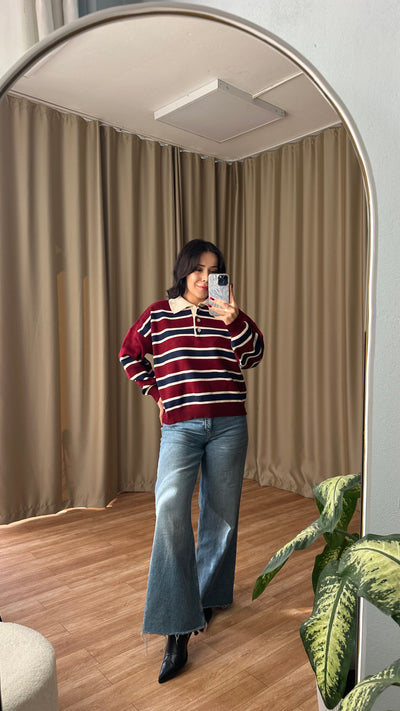 Bordo çizgili kazak
