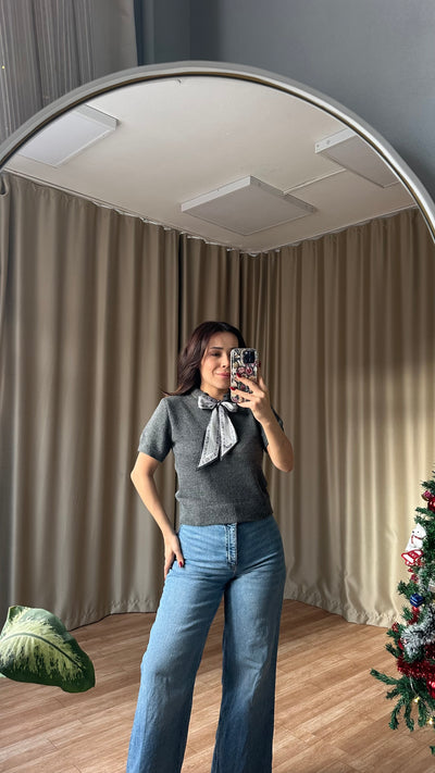 Fularlı triko kazak antrisit