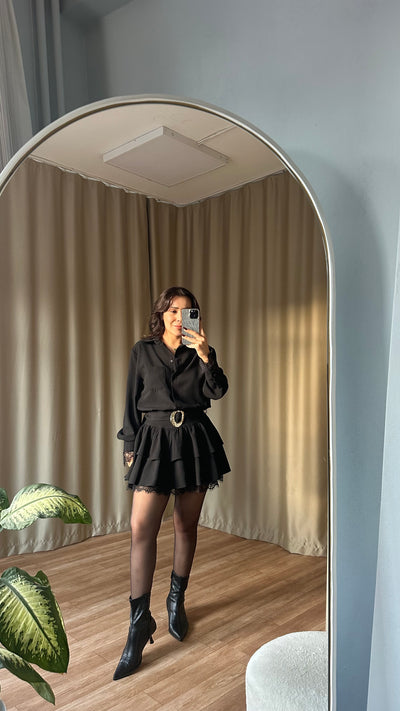 İpek Dokulu Transparan siyah gömlek