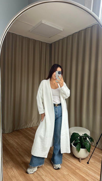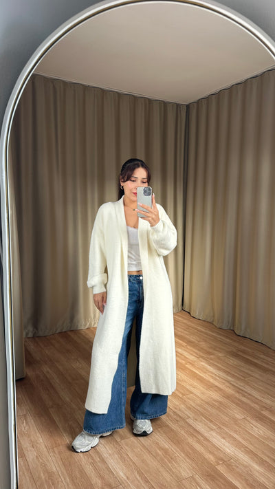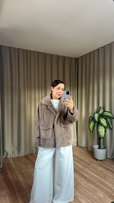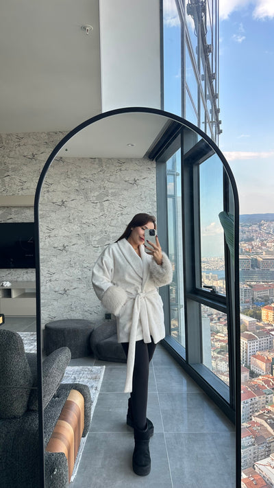 Kol detayı tilki kürklü kuşaklı Ceket Ekru