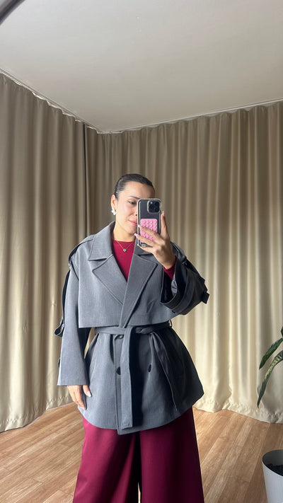 OVERSİZE DÜŞÜK OMUZ antrisit TRENÇKOT