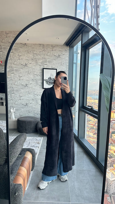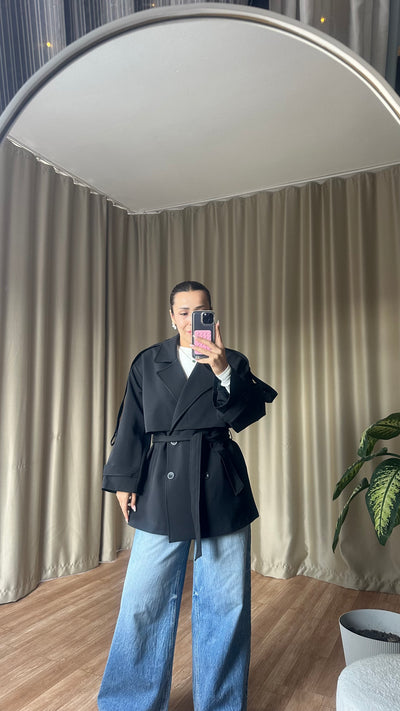 OVERSİZE DÜŞÜK OMUZ siyah TRENÇKOT