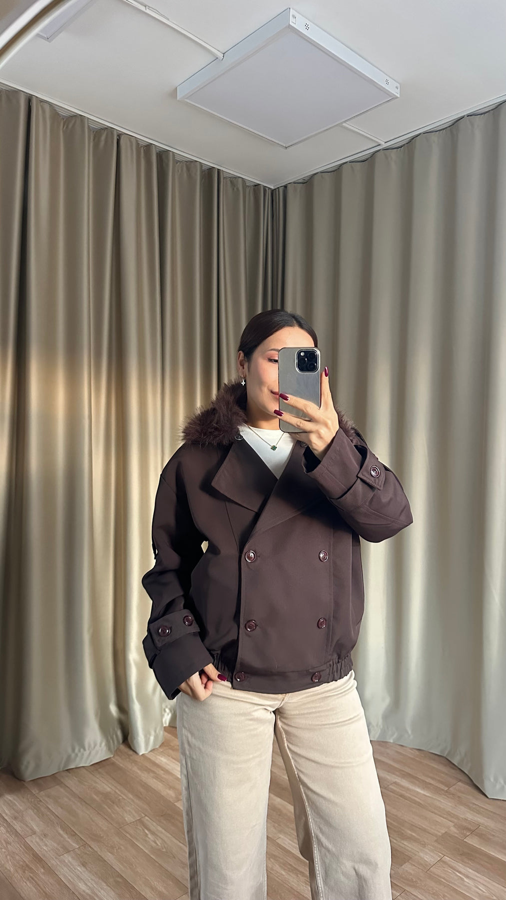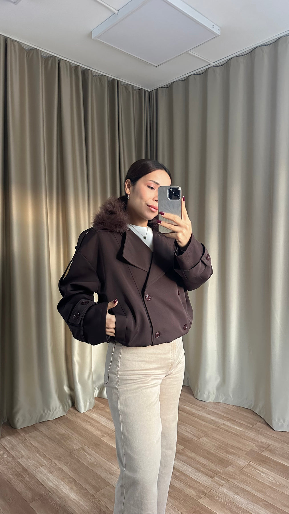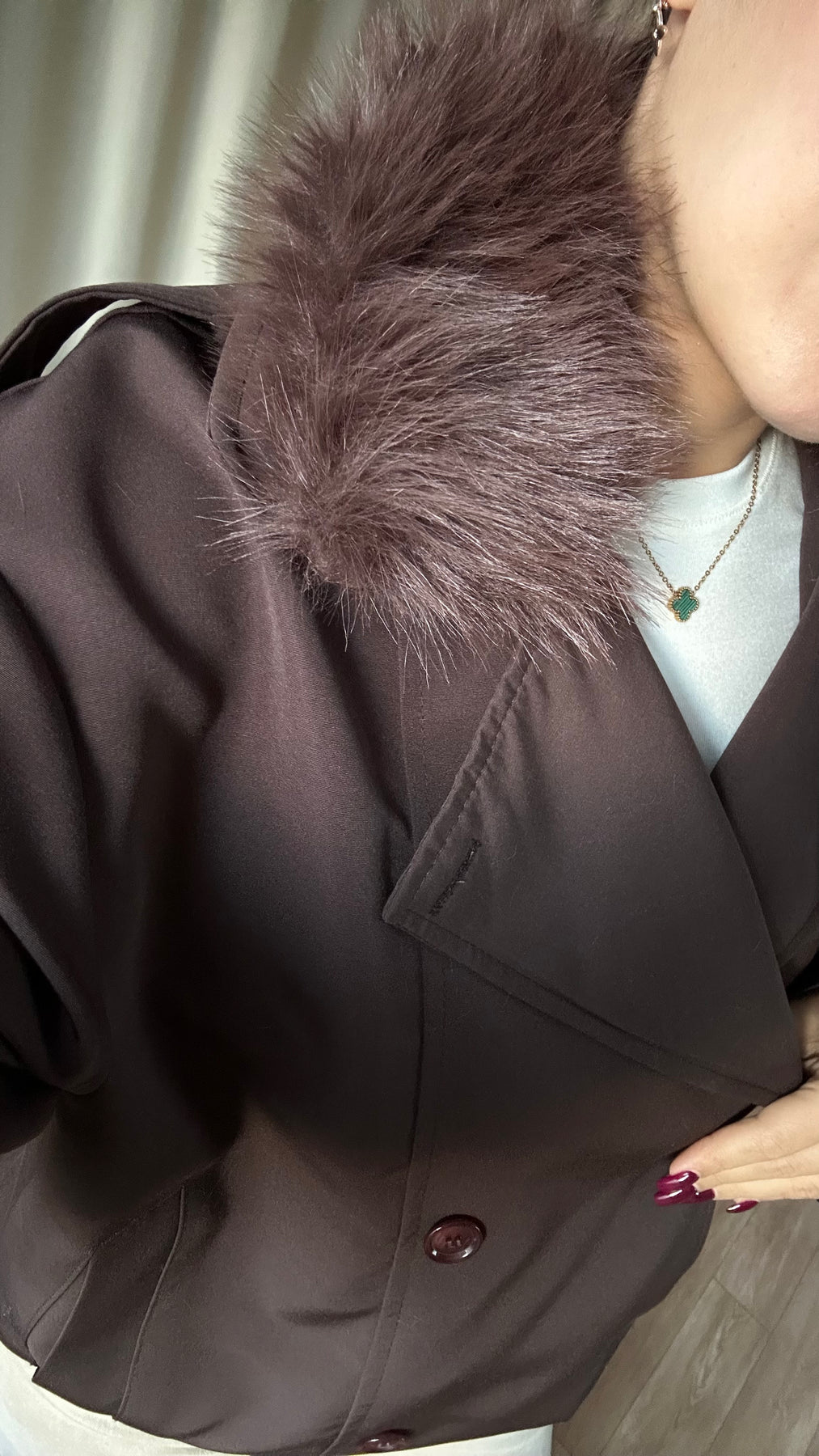 Çıkarılabilir Kürk Yaka Astarlı Acı Kahve Ceket