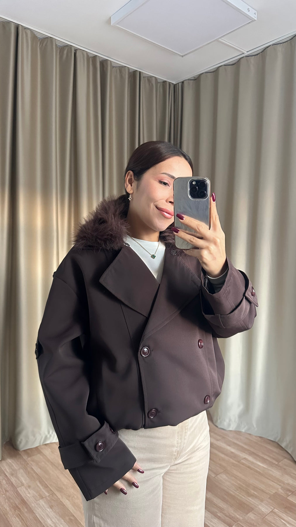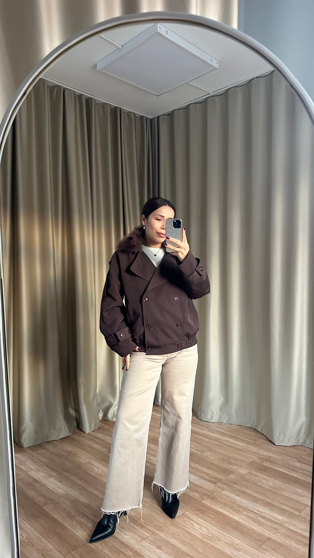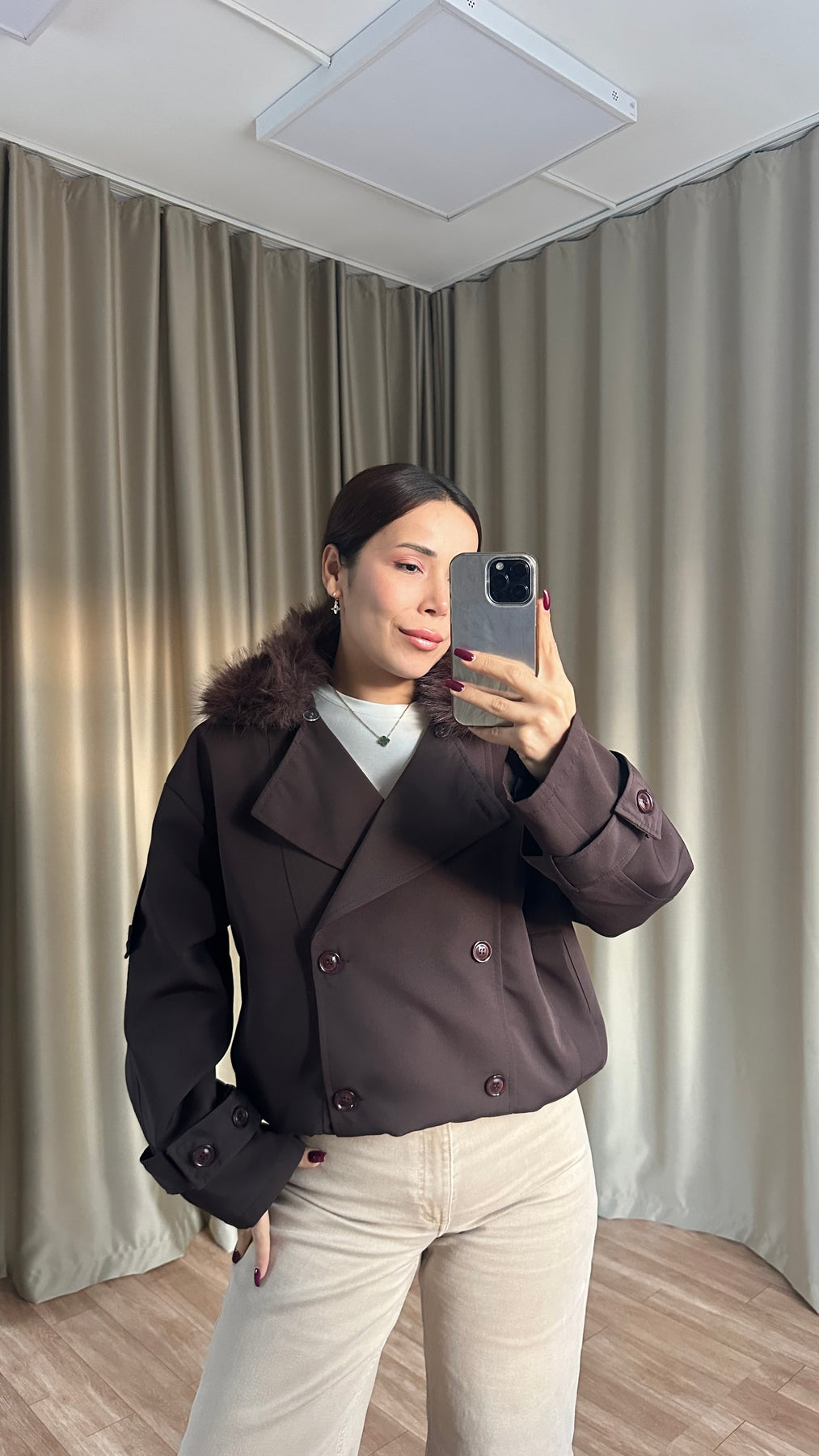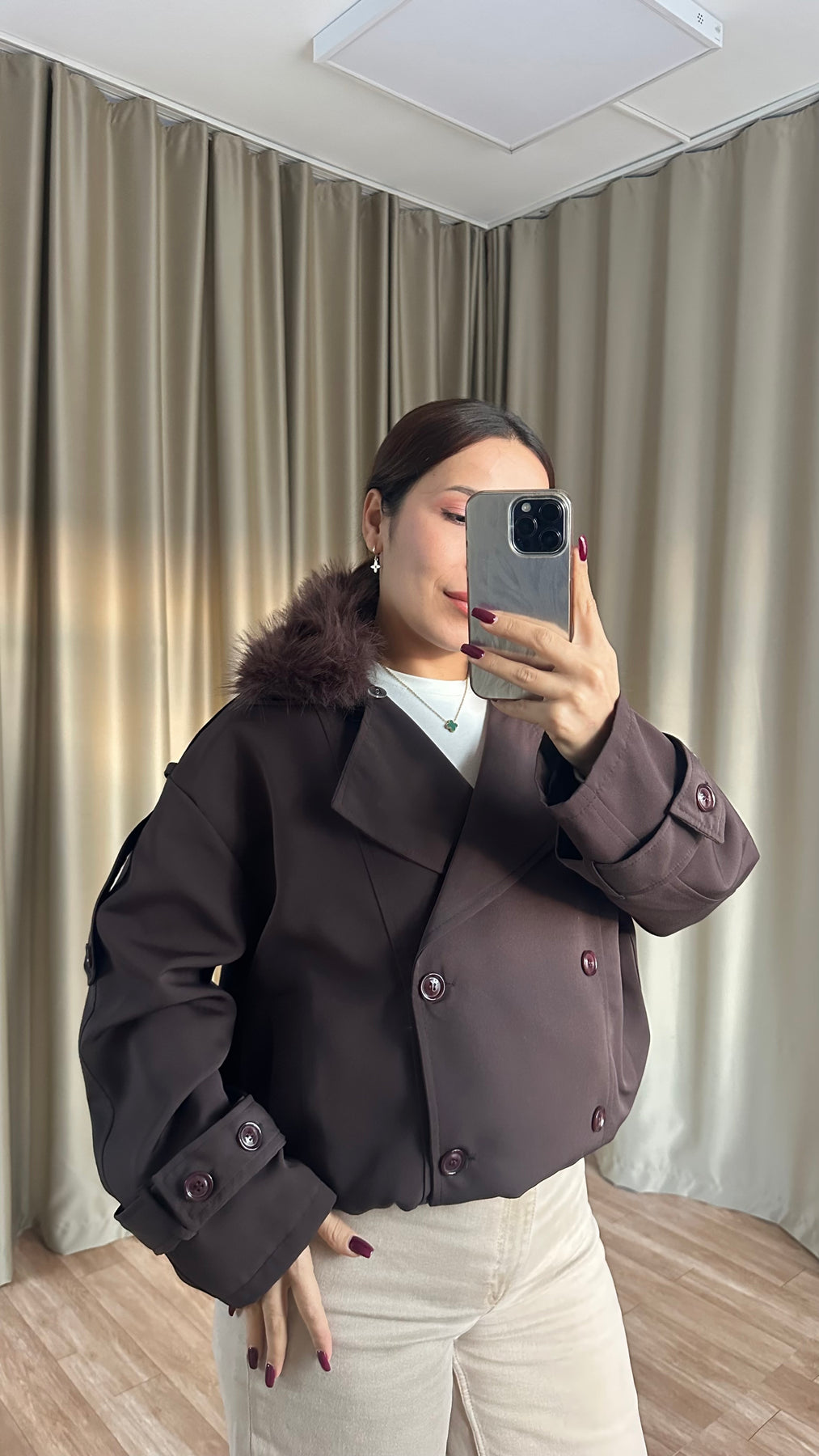 Çıkarılabilir Kürk Yaka Astarlı Acı Kahve Ceket