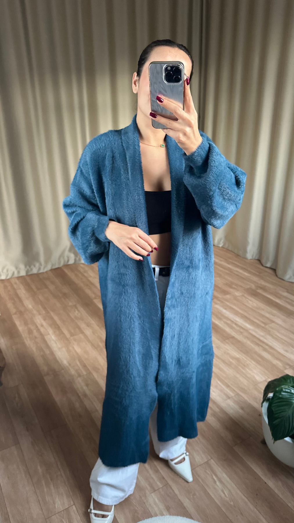 Petrol mavisi sakallı Yumoş hırka