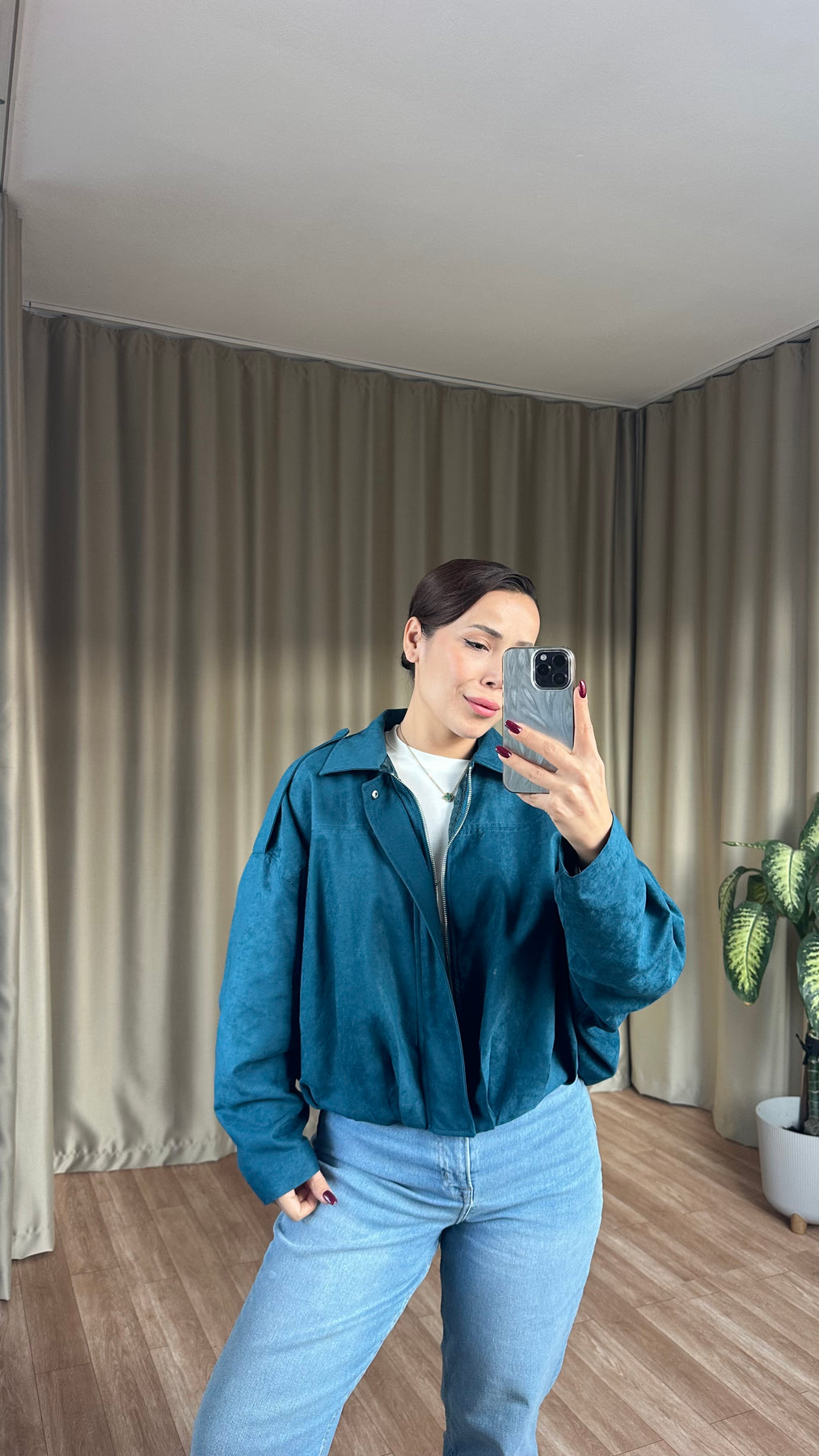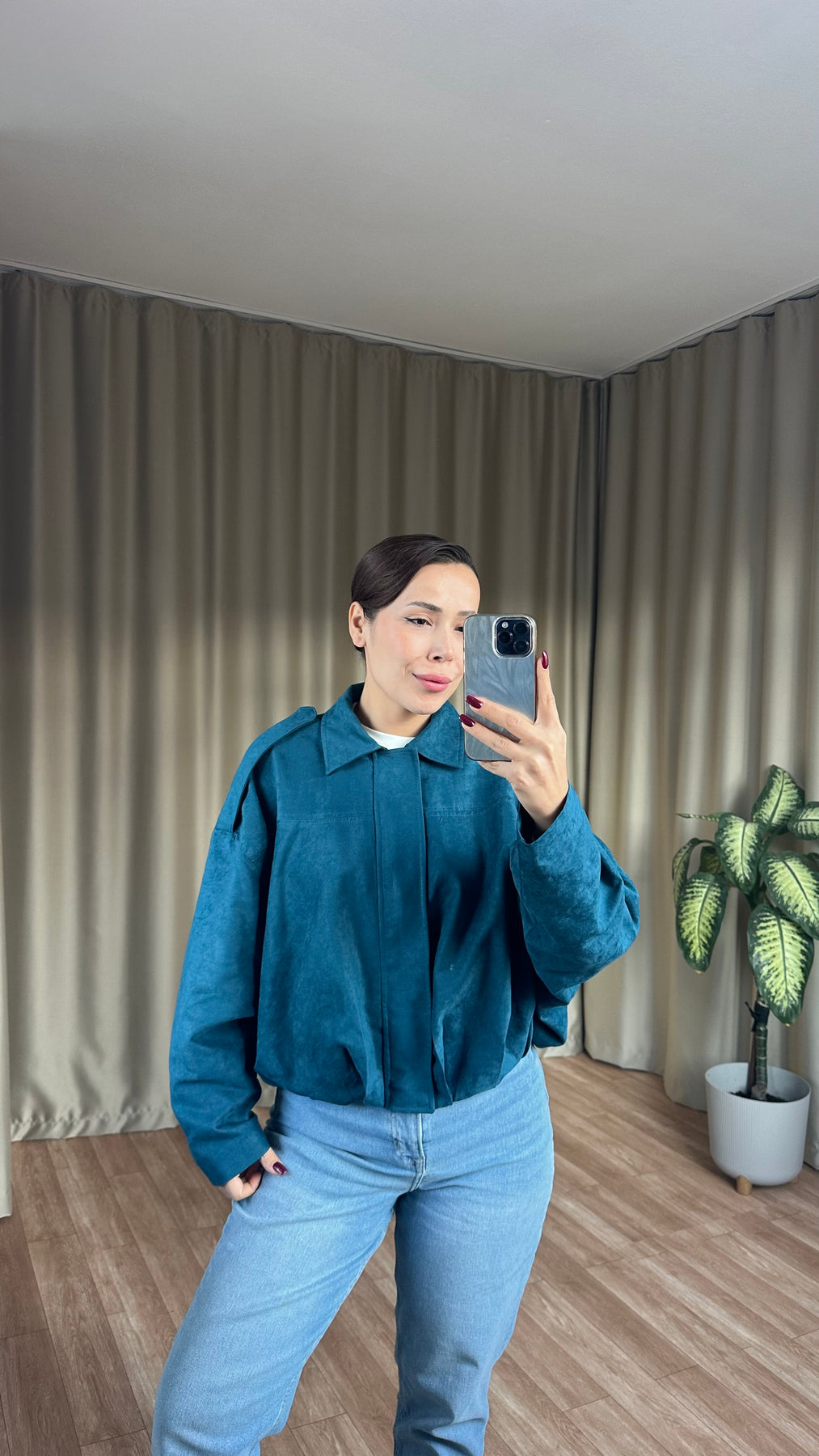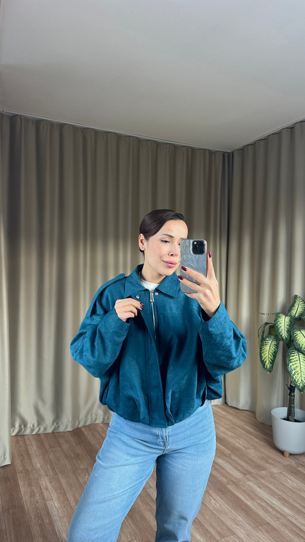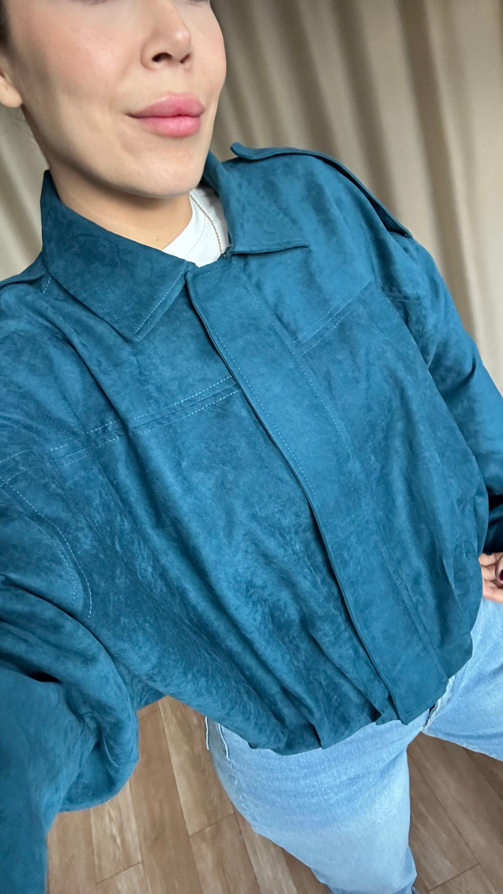 Petrol mavisi süet bomber ceket