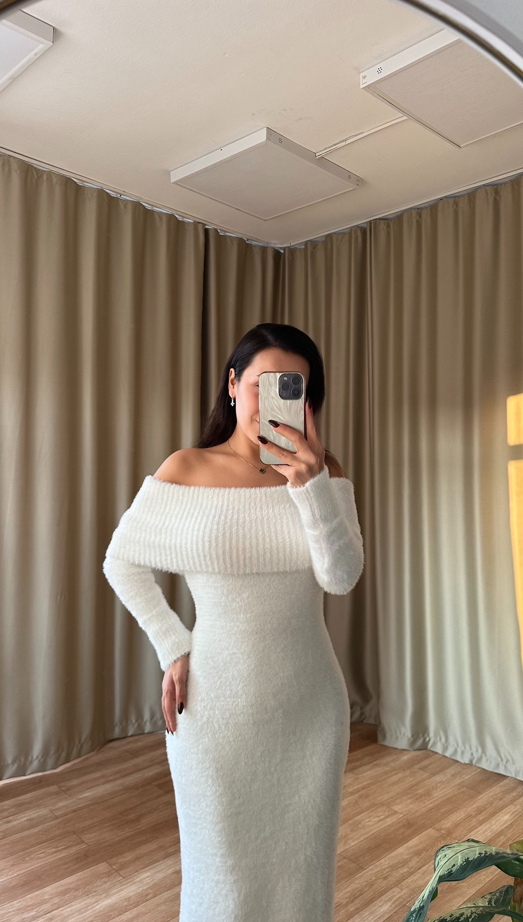 MADONNA YAKA beyaz SAKALLI TRİKO ELBİSE