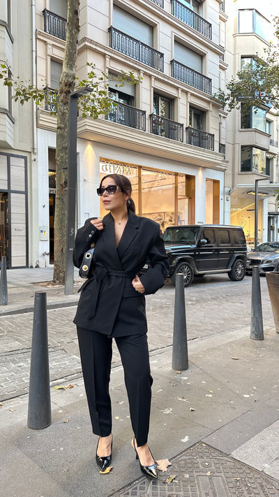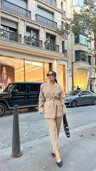 Taş rengi Halter Yaka Bluz Detaylı Takım