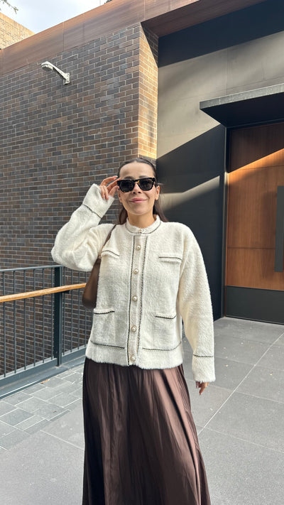 İnci Düğmeli Biye İşlemeli Hırka EKRU