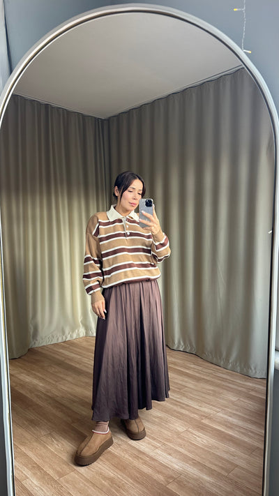 Kahve krem çizgili kazak