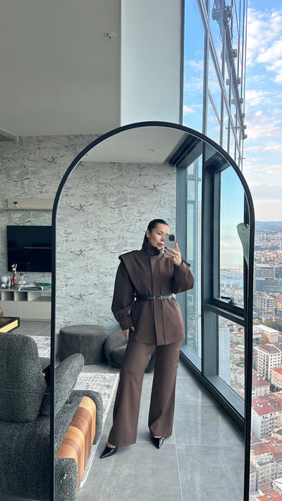 Kahve kemerli apoletli takım
